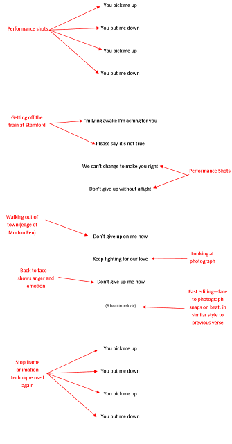 We are going to use amplification for our music video because we feel this is the appropriate one to use because illustrating the lyrics of our song would be fairly difficult as it would require a lot of love scenes, which is something that Matt and I feel is too cliche so we are going to try to do something a bit different whilst still amplifying the moral of the song.